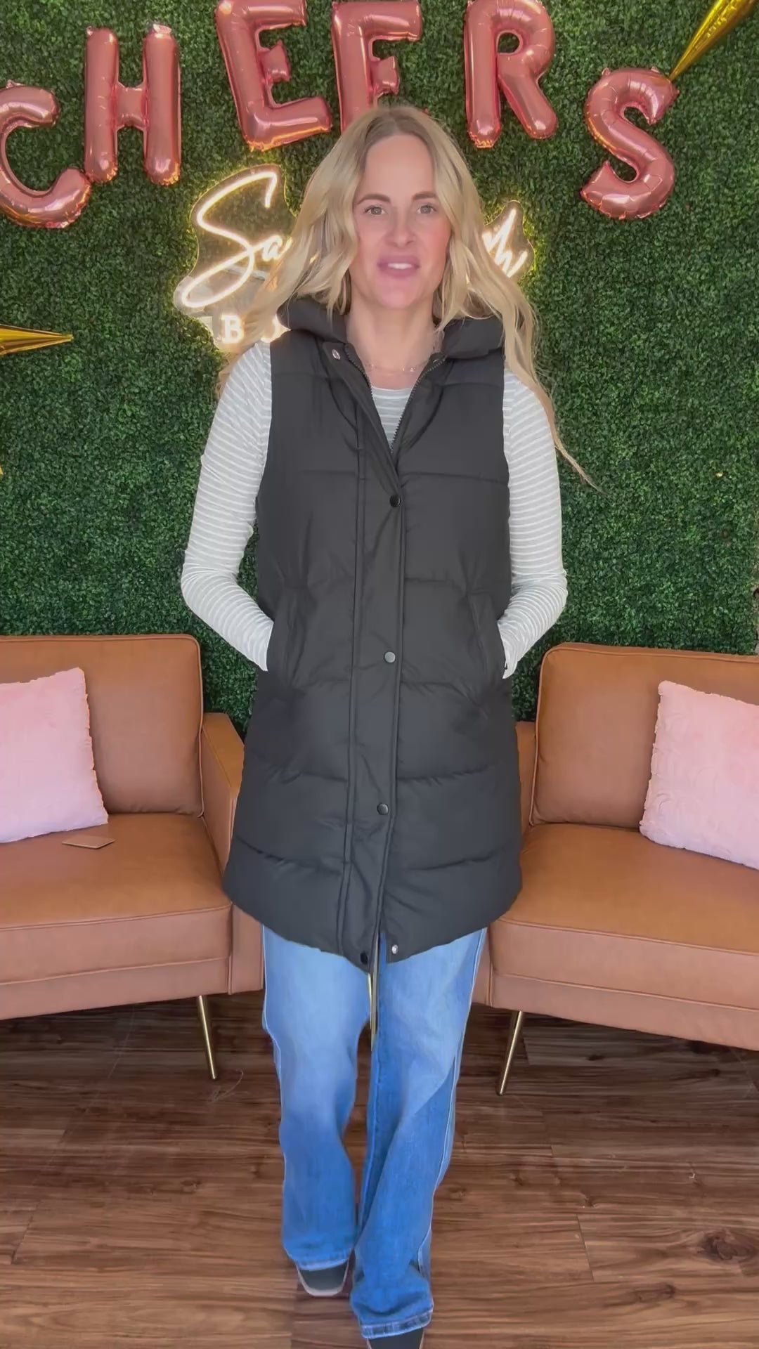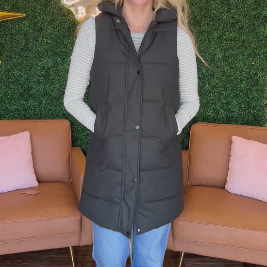 Hooded Long Quilted Puffer Vest