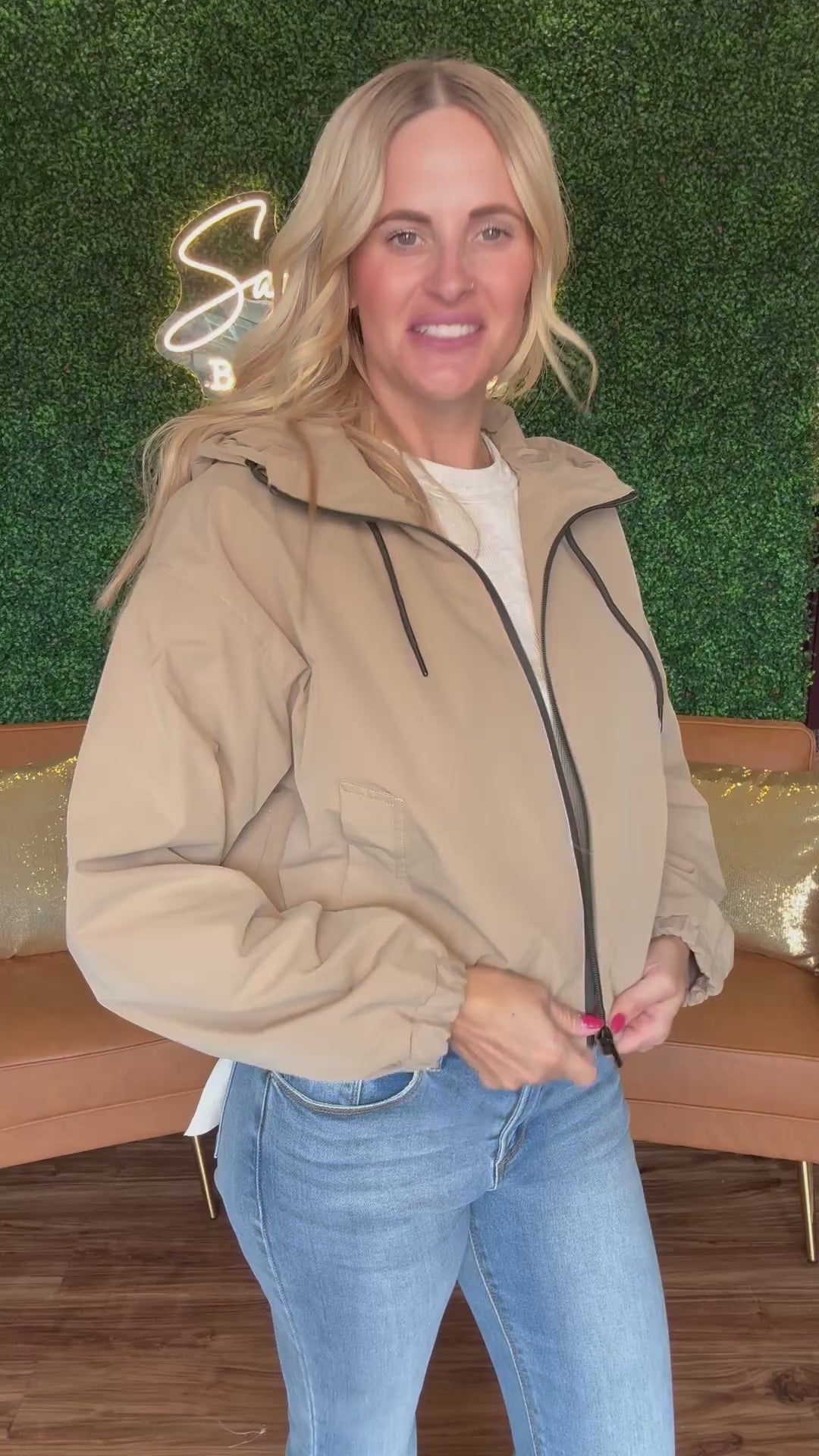This jacket comes with adjustable drawstrings, a cozy lining, convenient side pockets, and a flattering cinched waist and cuffs. Our model, standing 5'9" with a 32C bust, 26" waist, and 36" hips, is rocking a size small. Made from 100% polyester, it’s perfect for adding some fun flair to your outfit!
