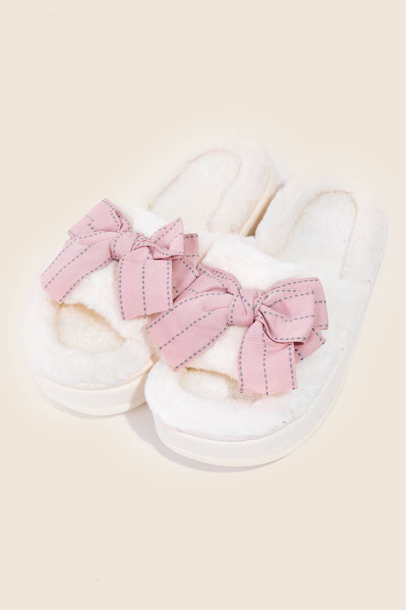 Perfectly versatile and endlessly stylish, this pair of slippers incorporates a remarkable open toe bow decor fuzzy slippers design