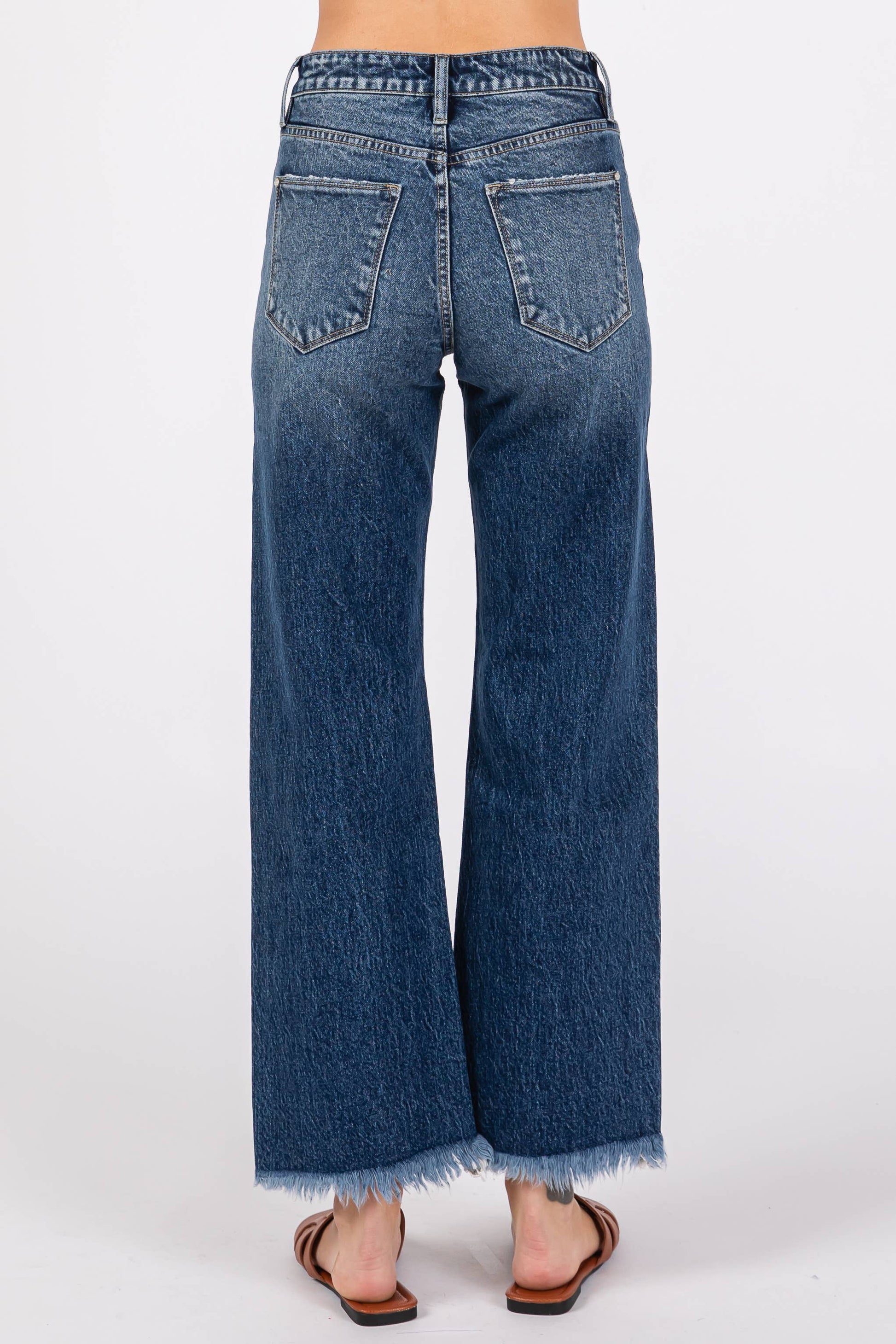 Step into vintage vibes with these high-rise wide-leg jeans that scream effortless cool. Featuring a comfortable stretch blend, they sit at a flattering 10.5" rise and flow into a roomy 18" leg opening with a perfectly frayed hem. The classic 5-pocket design, zip fly, and button closure keep things timeless, while the 99% cotton and 1% spandex mix gives you just enough give to move freely. A true wardrobe essential that works as hard as you do.